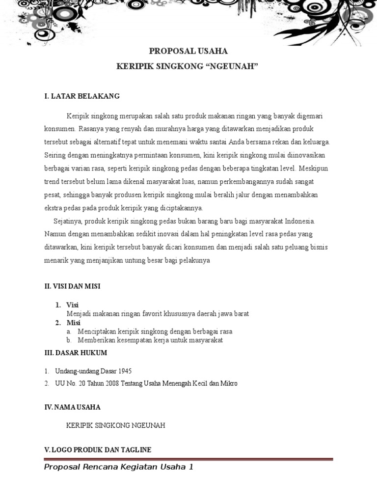 By naila karima 66711 views. Jessica valentina 01020581721027 deby kami diberi kesehatan dan kesempatan dalam menyelesaikan proposal pengantar bisnis yang berjudul keripik singkong jegidelbizayang berada. Temukan contoh proposal yang mudah dan dapat langsung digunakan dalam berbagai kegiatan yang akan anda laksanakan hanya di borneochannel.com. Ketika berkecimpung di dunia organisasi pasti kamu akan banyak membahas mengenai proposal. Hal ini dikarenakan dalam proposal anda telah merinci berbagai aspek yang.